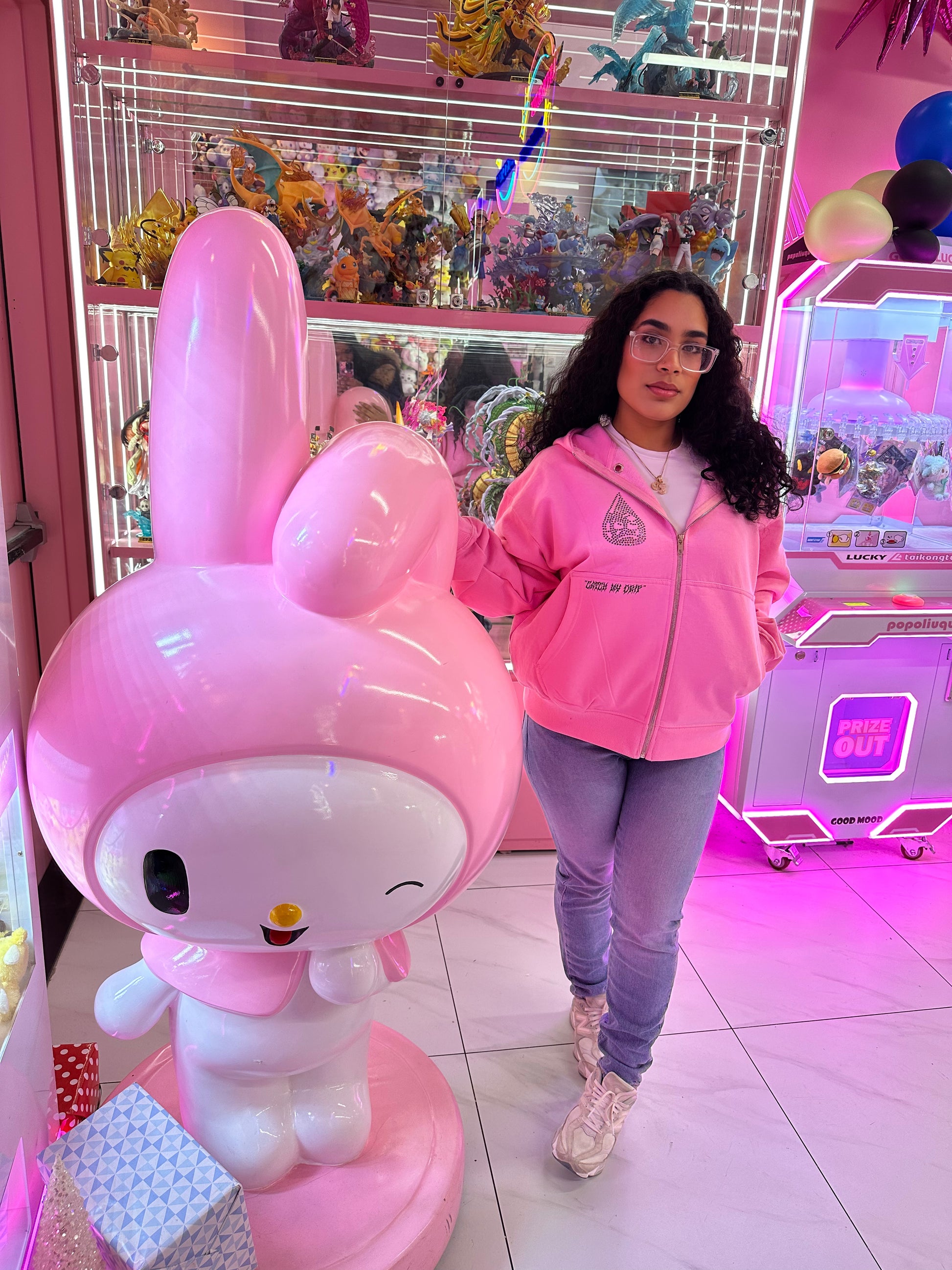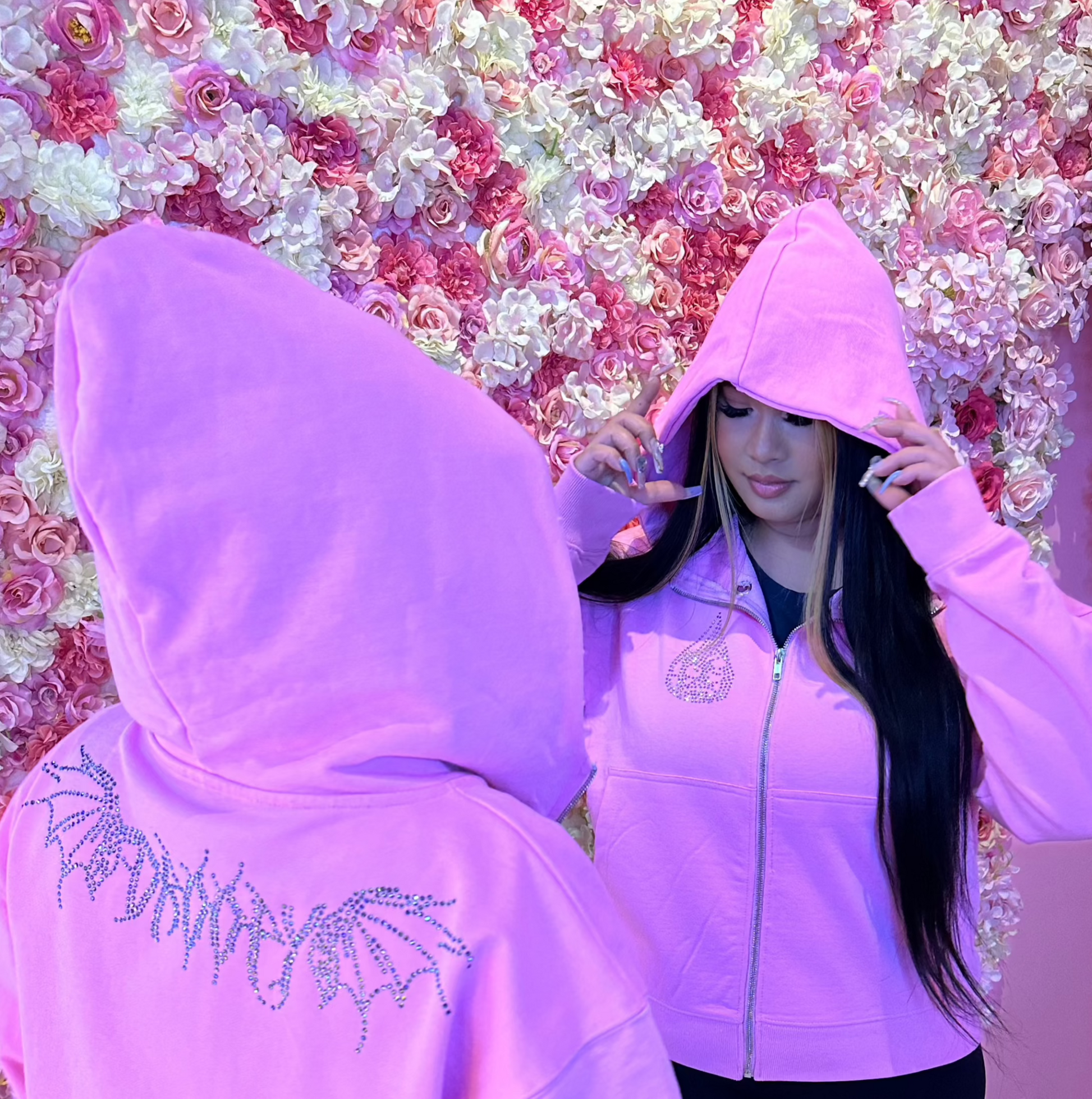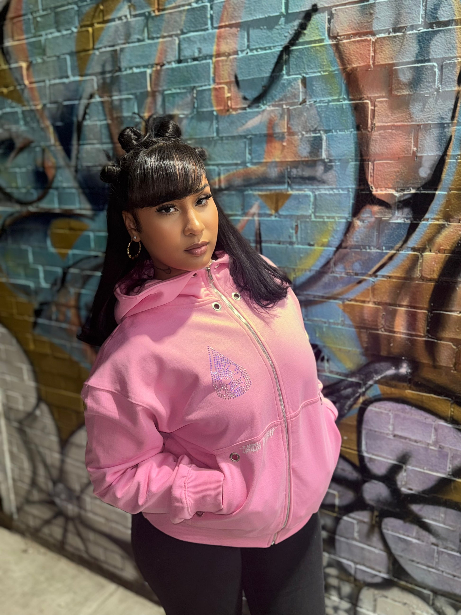 Turn heads and shine bright in our exclusive Valentine’s Day release! This bold pink sweater is all about the details, featuring dazzling rhinestones on both the front and back in your choice of silver or black for the perfect touch of glam. The eyelet-accented pockets add a sleek, edgy vibe, while the statement “Catch My Drip” makes it clear—you’re bringing the heat.